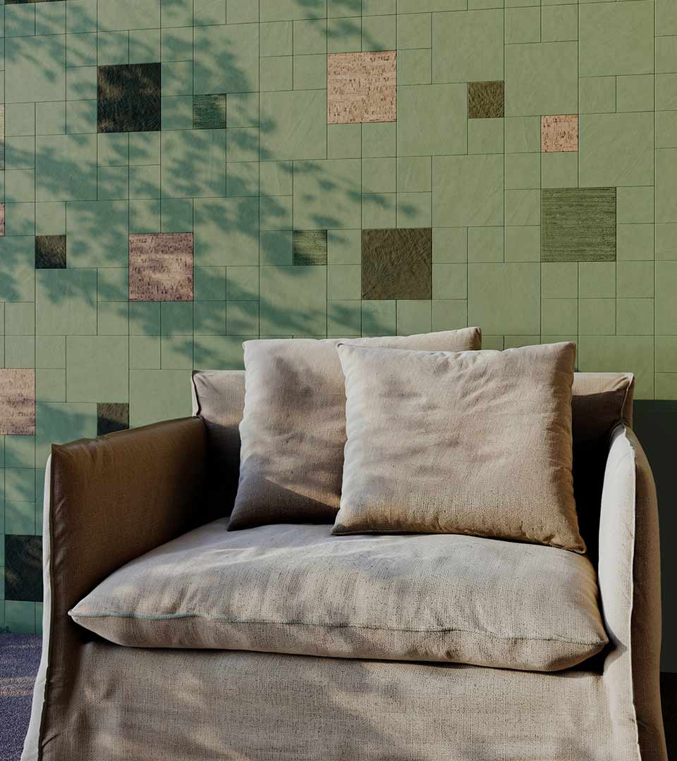 Le revêtement mural participe grandement au raffinement de l’aménagement intérieur. Certains acteurs ont fait du cuir leur matériau de prédilection. C’est le cas de Studioart qui, depuis deux décennies, rivalise d’imagination et d’innovation pour diversifier l’apparence du cuir dans l’espace intérieur. La collection anniversaire a pour nom Venti Preludio. Elle est l’occasion pour l’Italien d’intensifier son engagement écoresponsable. Alors qu’il a intégré les chutes de cuir dans la composition de ses modules muraux, Studioart expérimente cette fois en pionnier l’alliance de deux matières durables. Le liège se combine au cuir au sein de trois collections, déclinées chacune dans six coloris aussi élégants que le pancake, le cognac ou encore l’antilope… Cellula, Foliage et Infinito revisitent respectivement l’écorce de liège grossie au microscope, une végétation stylisée ou encore la dynamique de l’aléatoire. Le cuir n’est pas l’unique matériau utilisé chez Arte. Mais en 2026, l’esthétique de la peau revient en force. La collection Corium, riche et diversifiée, est entièrement dédiée au cuir caprin, reconnu pour sa souplesse et sa résistance. Elle se compose de sept références en cuir satiné ou nubuck sur intissé. Avenio, Paladin sont les plus simples, tout en monochromes naturels aux coutures parfaites. L’inspiration historique traverse les revêtements les plus ornementés. Les broderies sur cuir sont réalisées en Inde. Jaseran, Gambison et Ductia tirent leurs motifs du Moyen Âge. La Renaissance est aussi une source d’inspiration très vivace cette année pour l’éditeur belge. En témoignent Cassone et Palazzo, dont les broderies géométriques réinterprètent librement les plafonds à caissons et la monumentale cathédrale de Florence. Les tons de cuir Pearl, Paprika, Nightfall et Mink ont été soigneusement choisis. Résultat ? Le mur est physiquement très présent.