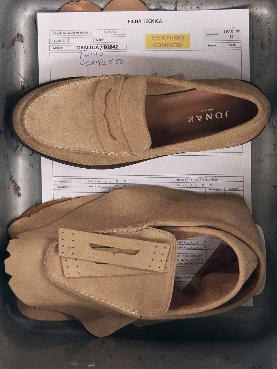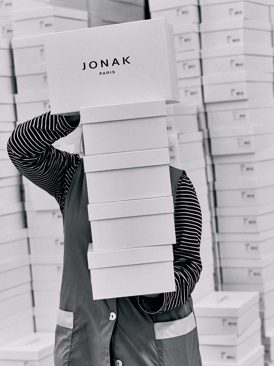 Choisissant de produire mieux, plus près en respectant les savoir-faire, Jonak n’a pas cédé aux sirènes de la délocalisation lointaine qui séduisirent beaucoup de marques dans les années 90 et a maintenu une production européenne. 85% de la production est aujourd’hui réalisée au Portugal, le reste en Espagne, en Italie ou bien encore en Turquie, avec des cuirs européens. Un choix de préserver une fabrication plus artisanale, avec des ateliers devenus au fil du temps de véritables partenaires, qui s’avère aussi cohérent avec la stratégie de premiumisation de la marque. Cette démarche, en pérennisant les relations avec les fabricants, crée un cadre favorable pour le maintien de standards élevés et permet d’engager plus facilement les ateliers dans le processus RSE.