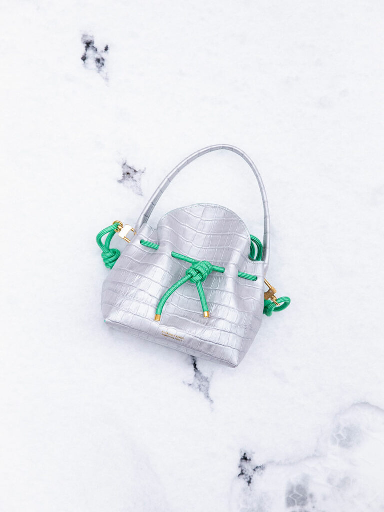 Si Domestique est né la même année qu’Atelier Penso, son esprit se révèle bien différent puisque la marque s’est fait remarquer en lançant des accessoires sulfureux en cuir. Elle a, depuis, élargi son répertoire en détournant des objets familiers pour en faire des sacs décalés, épurés et colorés. Tels la cagette, le panier à provisions ajouré, le papier kraft… Le nom même de la marque renvoie à l’univers du quotidien. « Nous concevons, fabriquons nos accessoires nous-mêmes dans notre atelier parisien, précise Bastien Beny, son cofondateur. Tous nos fournisseurs sont à proximité, dans un rayon de deux kilomètres. On aime avoir ce lien avec eux et ainsi préserver les circuits courts. » Domestique, qui a reçu le Grand Prix de la Création de la Ville de Paris en 2023, a installé son atelier à La Caserne, l’incubateur de marques écoresponsables situé dans l’Est parisien.