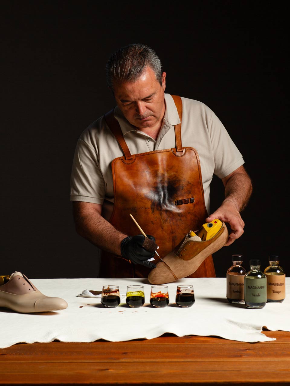 Véritable carte maîtresse de Magnanni pour se différencier de la concurrence, son savoir-faire se caractérise par trois compétences toutes particulières. D’abord la construction Bologna ; consistant à envelopper le pied d’une doublure de cuir souple puis à doubler le montage pour aligner le cuir intérieur avec la tige, ce procédé assure une liaison harmonieuse entre la semelle et la structure de la chaussure, offrant une souplesse et un confort immédiat sans la coutumière période d’adaptation du pied ainsi qu’une solidité incomparable. Véritable signature de la marque, l’artesano stitch reliant la tige avec les semelles intérieure et extérieure par un détail graphique cousu à la main, renforce la durabilité de la chaussure tout en singularisant son dessin. Autre spécialité du chausseur, la peinture à la main repose sur les applications successives de plusieurs couches de colorants, conférant au cuir une profondeur et un effet visuel unique pour chaque soulier. L’intégralité de la production provient des deux usines de la marque, dénombrant à elle deux 550 artisans. « L’atelier historique d’Almansa concentre la majeure partie de la production masculine ainsi que l’intégralité de la fabrication de la collection féminine. Notre unité au Portugal se réserve, quant à elle, certains procédés spécifiques comme la couture à la main des mocassins ou la maroquinerie, précise M. Blanco. Comme nous externalisons très peu en dehors de nos sites, le contrôle qualité interne à chaque étape est assuré. La complémentarité des deux pays nous apporte excellence et flexibilité ». Avec des prix allant de 350 à 650 euros pour les modèles masculins et de 350 à 550 euros pour les modèles féminins, la marque revendique « un rapport qualité-prix juste, la positionnant dans le premium sans tomber ni dans la massification, ni dans une exclusivité excluante ».