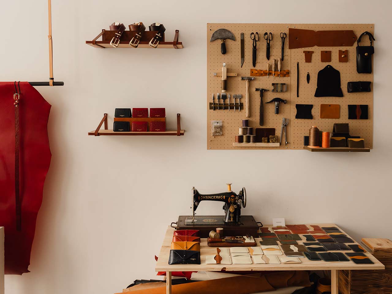 Attaché au partage et à la transmission de savoir-faire et de connaissance du cuir, l’artisan maroquinier organise des ateliers d’initiation au travail de cette matière noble. Durant plus de deux heures, les participants, de tous âges, apprennent les techniques de base et confectionnent leurs propres pièces – porte-cartes, étui à lunette, ceinture ou sacs en cuir à tannage végétal. « J’adore partager autour des gestes métier, de la création, de la matière cuir. Il est essentiel de voir et de toucher le cuir, d’en expliquer l’origine et de mettre en lumière la valorisation de ce co-produit », souligne le dirigeant. L’atelier est également en mesure d’assurer le développement de prototypes pour d’autres marques et propose des prestations de restauration, entretien, teinture et patine.