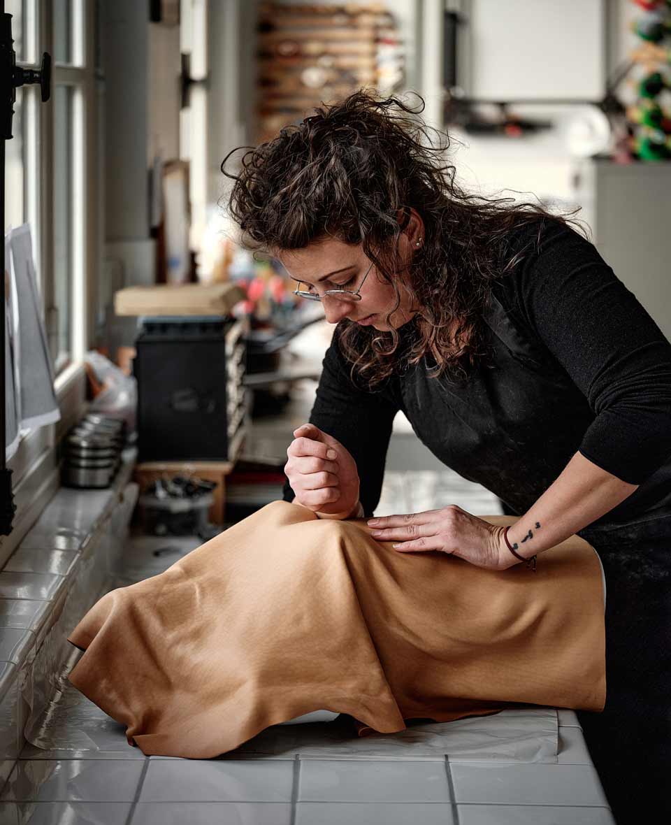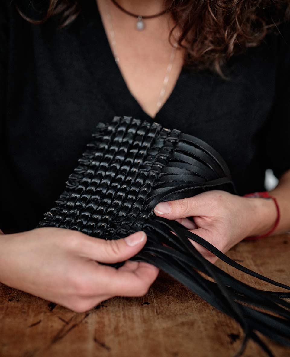 La sellière d’art Sofia Shazak transforme le cuir grâce aux techniques d’harnachement qu’elle explore depuis une dizaine d’années. La dernière en date, dévoilée lors de la 13e édition de Maison d’Exceptions du salon Première Vision, est le Shallang. Cette technique ornementale, apparue en Hongrie, est à la fois rare et très originale. L’artisane en livrera une interprétation monumentale à Homo Faber à Venise, l’été prochain.